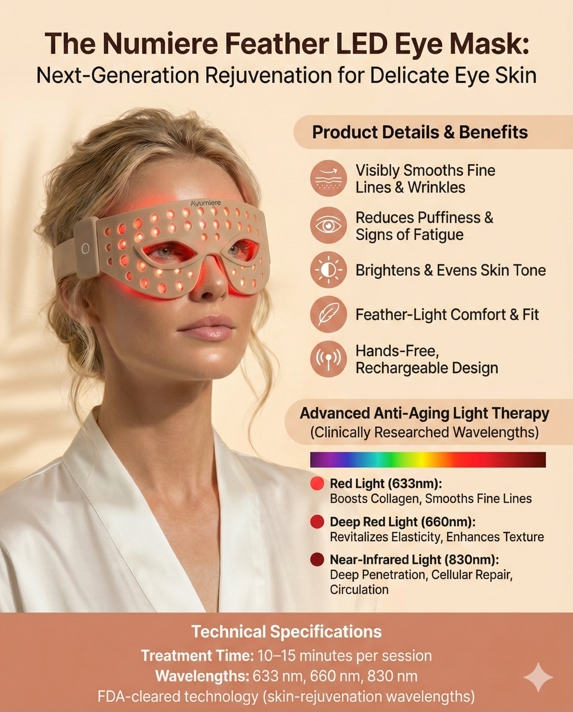 The Numiere Feather LED Eye Mask is an FDA-cleared medical device